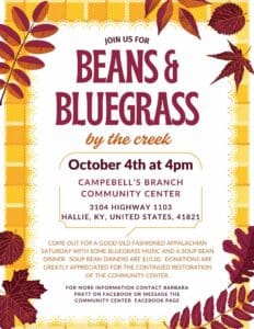 The Campbell’s Branch Community Center is having a Beans & Bluegrass by the Creek