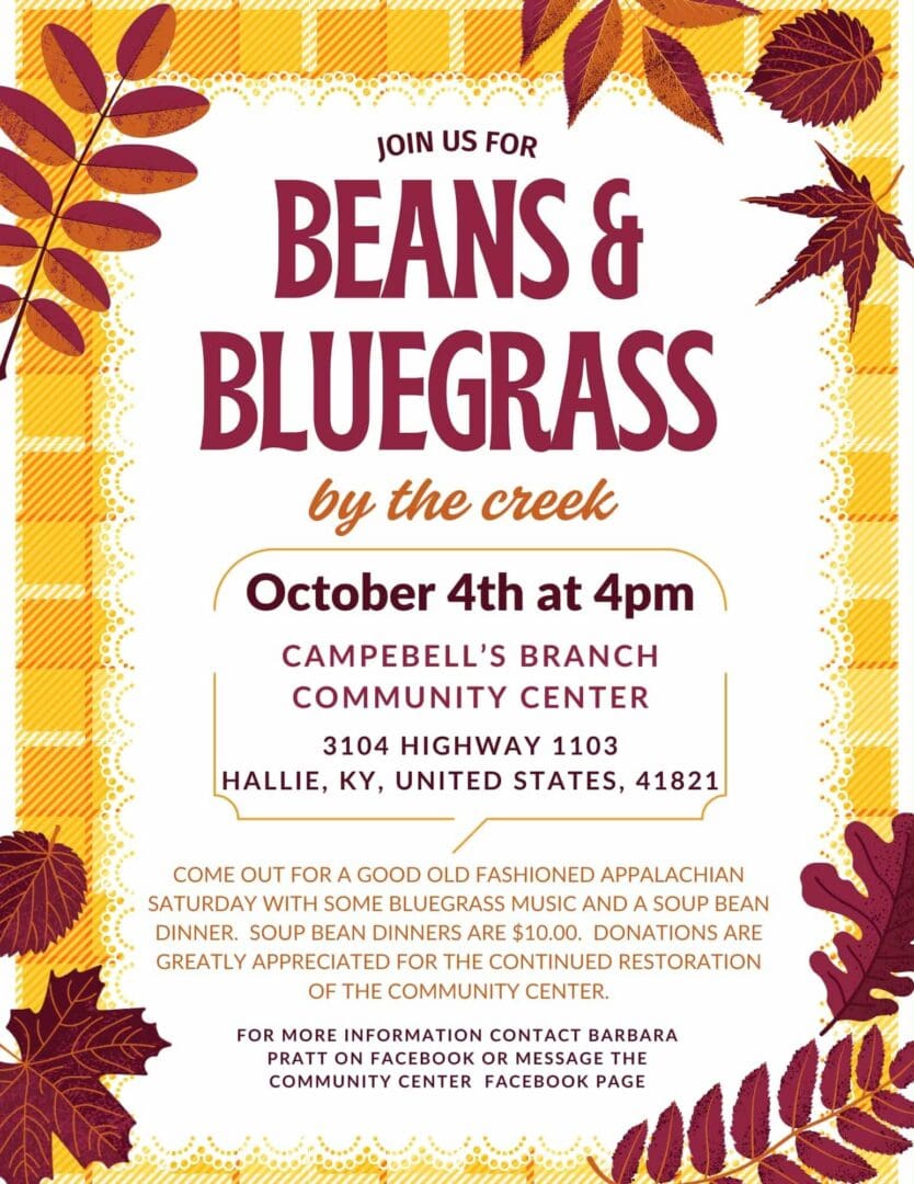 Campbell’s Branch Community Center Beans & Bluegrass Event this Saturday