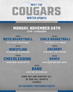 Meet the Cougars for Letcher County Central High School boys and girls’ basketball and all winter sports will be held this Monday November 24th.